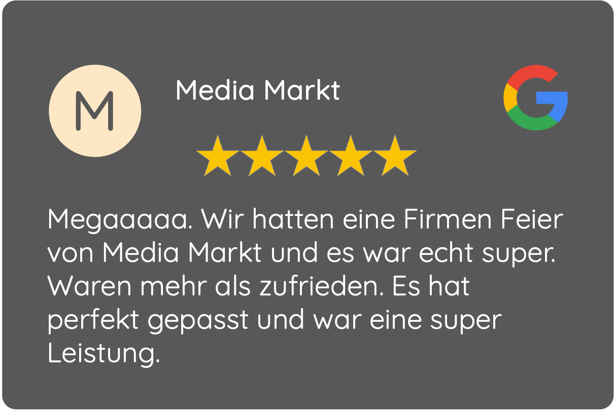 Bei größeren Events arbeite ich mit namenhaften Unternehmen aus dem Ruhrgebiet zusammen. Dadurch bin ich in der Lage, nahezu jede Veranstaltungsgröße sowohl technisch als auch organisatorisch umfassend abzudecken. Das ermöglicht mir, Euch einen zuverlässigen und reibungslosen Komplett-Service aus einer Hand anzubieten.